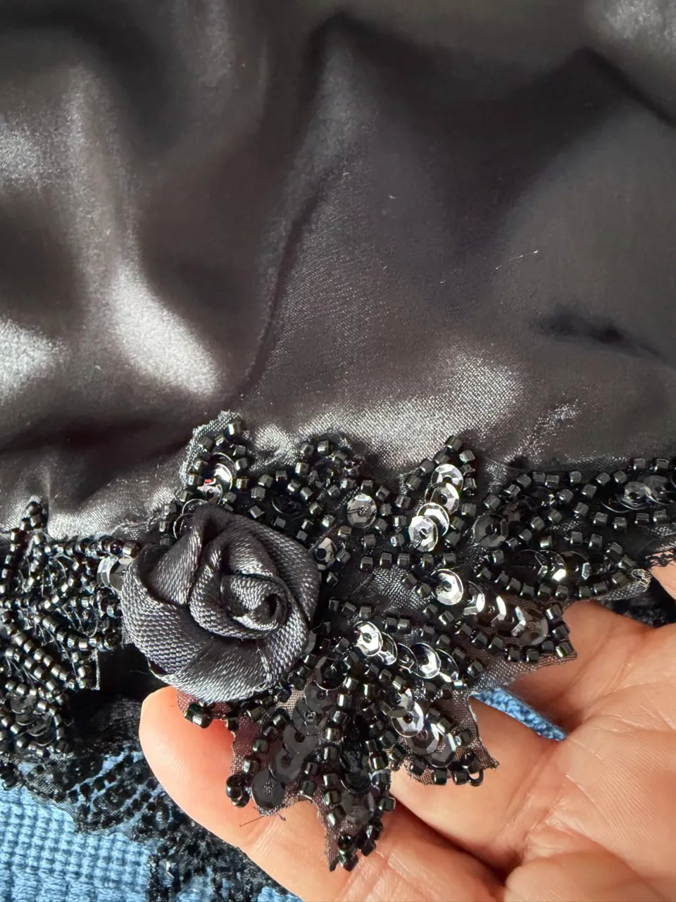 Black on Black Handmade Slip 2X (19″/50cm) is a premium women’s lingerie piece designed for softness, comfort, and timeless black elegance. Featuring smooth fabric, a flattering A-line fit, and elegant lace trim with 3D flower pearl embroidery, it is perfect for daily wear and special occasions.
